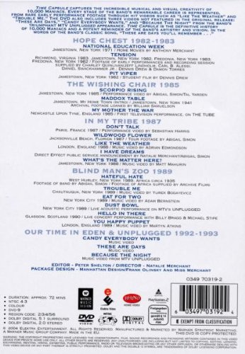 Time Capsule captures the unbelievable musical and visible creativity of 10,000 Maniacs. Each stage of the band’s outstanding profession is represented, from uncommon early efficiency footage by means of hit movies resembling “Just like the Climate” and “Bother Me.” The DVD additionally consists of three movies not featured within the unique launch: “These Are Days,” “Sweet Everyone Desires” and “As a result of The Evening” from the band’s triumphant MTV Unplugged. Time Capsule is the definitive historical past of 10,000 Maniacs and a potent reminder of the band’s artistry and imaginative and prescient. Within the phrases of the band’s traditional music, “these are days you will keep in mind…”