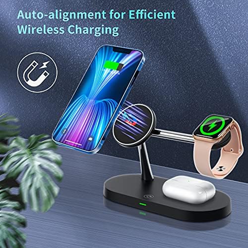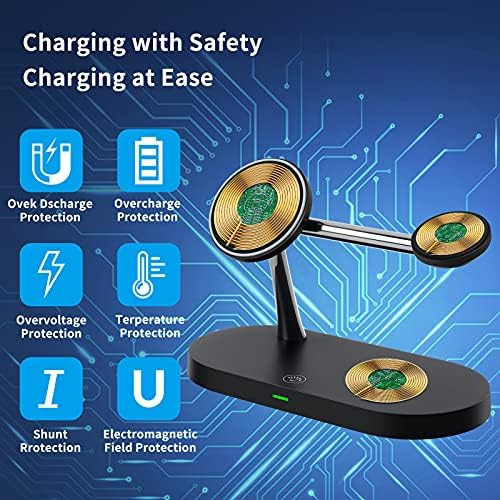 【LED Backlight & Multi-protection】The mag-safe wi-fi charging stand has a LED gentle on the again, 3 ranges dimmable LED eye-care lamp. Simply must flippantly contact the change to regulate the sunshine colour, offers you sufficient safety in the dead of night. Constructed-in sensible chip, which may present over-voltage safety, over-current safety, short-circuit prevention, temperature management in addition to overseas object detection operate, guards your machine battery in opposition to overcharge harm.