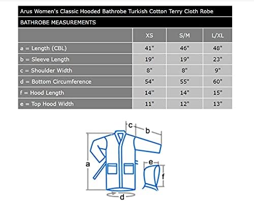 Arus Ladies’s Basic Hooded Bathrobe Turkish Cotton Terry Fabric Gown