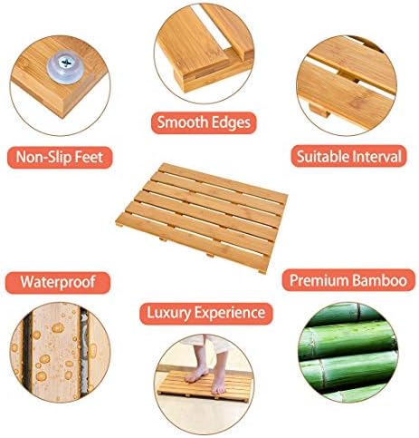 ✿WATERPROOF: Bamboo bathtub mat is waterproof which has slatted floor conduces to drainage; in contrast to these fabric mats available in the market which can take up lots of water
