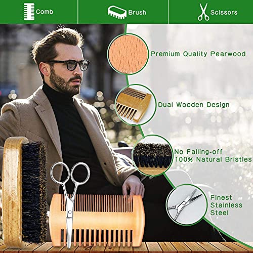 🧔🏻【Good Beard Grooming Equipment】: Pure boar bristle brush and pear wooden comb, no burr, anti-static, no falling-off bristle, serving to to therapeutic massage your beard and removes dirts. The scissors is sharp sufficient to chop additional hair. The canvas bag can carry this package to wherever.