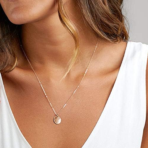 1 review for Befettly Moon Pendant Necklace 14K Gold Fill Dainty Hammered Moon Section Gold Choker Easy Crescent Moon Full Moon Karma Circle Choker Necklace