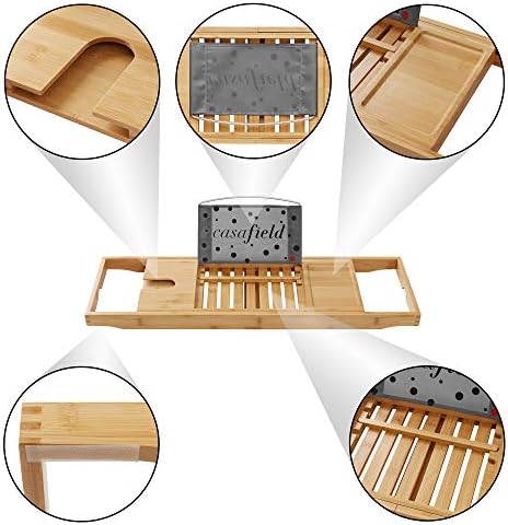 Bamboo bathtub caddy: Crafted from 100% natural “Moso” bamboo, this premium, sustainable all-natural wooden options a gorgeous and stylish design, excellent for any toilet decor. That includes a skinny, protecting waterproof coating, this sturdy bathtub caddy is designed to final.