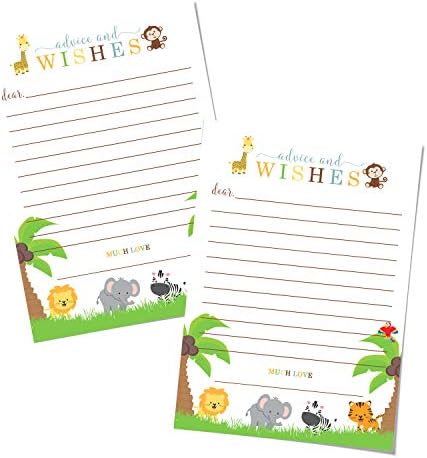 Premium Safari Animal Get together Provides: 25 pack of recommendation playing cards – measurement 4×6 inches – professionally printed on 120 lb. matte cardstock, which is straightforward to personalize. Preprinted traces make it straightforward for everybody on the celebration to jot down their very own personalized observe of affection, congratulations, needs or recommendation.