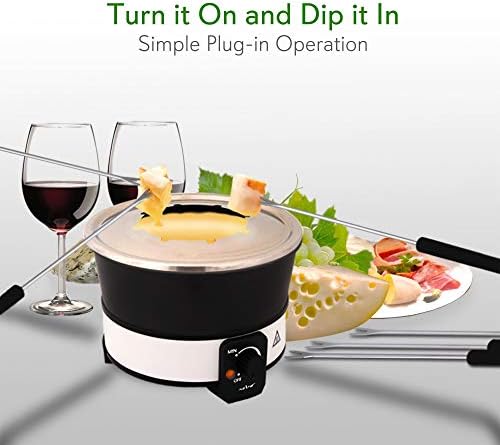 2.1 QUART CAPACITY: The fondue maker set incorporates a cooking bowl capability of two.10 quart with 8.66” diameter creating beneficiant servings of your favourite melted cheese or chocolate sauce for the entire company, associates, and household to take pleasure in