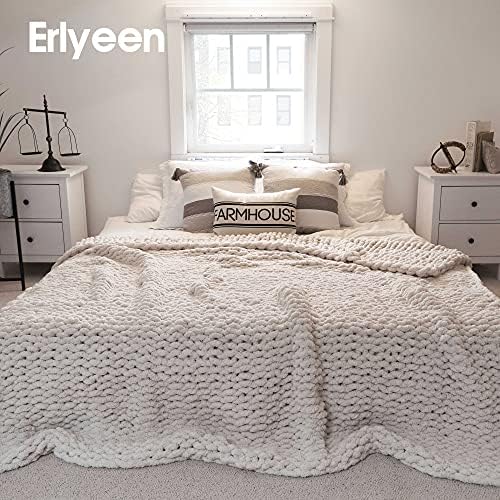 ERLYEEN Chunky Knit Blanket Throw Chenille Cable Handmade Chunky Knit Throw Blanket Heat Gentle Cozy for Mattress Chair Couch Finest Reward