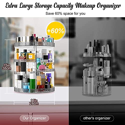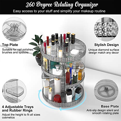 The thick and durable tray permits you to carry extra cosmetics. The floor is designed with diamond chopping, which makes your 360-degree make-up storage field look distinctive, very trendy and delightful!