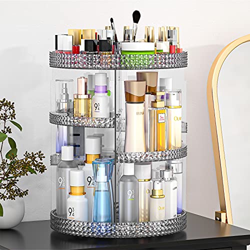 Famitree 360° Rotating Make-up Organizer is an efficient resolution for beauty storage, making your toilet, dressing desk and counter extra tidy. It could possibly completely manage your cosmetics, together with skincare, fragrance, shade correction, lipstick, brushes, nail polish, eyeliner, necklace.