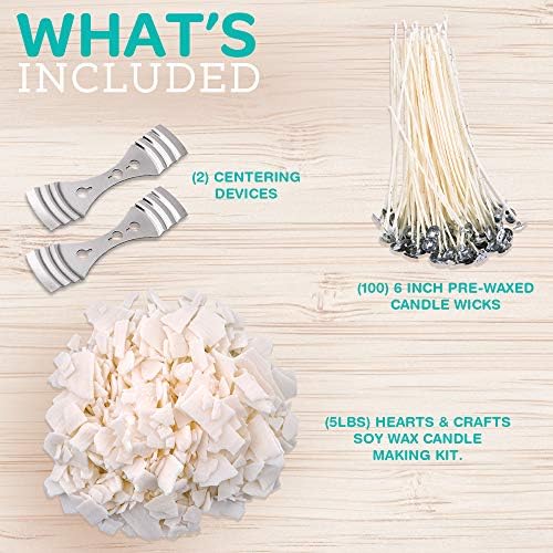 💙 PACKAGE INCLUDES: One (1) 5lb bag of pure soy wax (flake type), 100 (100) pre-cut candle wicks, and two (2) centering gadget.