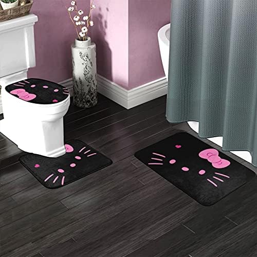 Hiya Kitty Rug Rest room Rugs Units 3 Piece Rest room Units with Rugs and Equipment Bathtub Mats for Rest room Non Slip Bathroom Lid Cowl