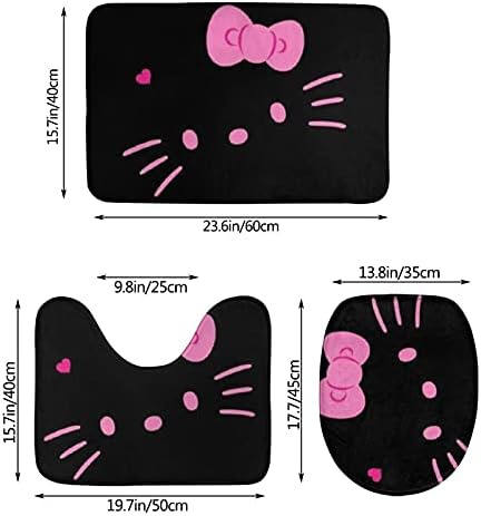 Hiya Kitty Rug Rest room Rugs Units 3 Piece Rest room Units with Rugs and Equipment Bathtub Mats for Rest room Non Slip Bathroom Lid Cowl