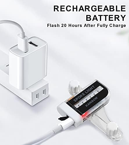 This rechargeable LED bike wheel lights helps you saving pointless prices on repeat shopping for batteries. After totally charging, it may well used over 20 hours.(Bundle solely embody USB cable)