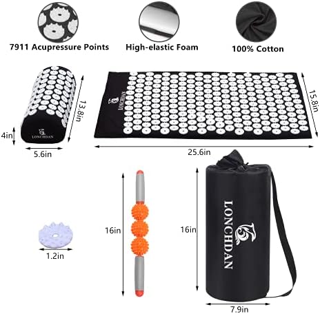 LONCHDAN Accupressure Physique Mat and Pillow with 16IN Muscle Therapeutic massage Curler Set