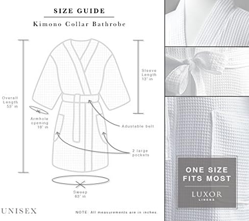 Get pleasure from spa-like consolation from the sanctuary of your personal house. Crafted from 100% Egyptian Cotton right into a textured, waffle weave, this gown will probably be sturdy and absorbent. So luxurious you would possibly by no means need to take it off! Good for males or girls, it makes a fantastic reward for your self and your accomplice. Measurements: Size: 53 inches; Sleeve size: 13 inches; Armhole circumference: 18 inches; Horizontal sweep: 63 inches. Machine wash and dry.
