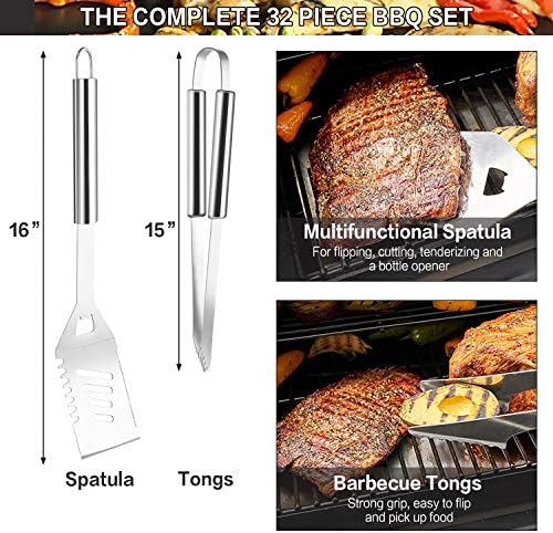 32PCS BBQ Grill Instruments Set,Stainless Metal Grilling Equipment with Case, Storage Apron, Grill Mats, Thermometer for Yard Barbecue Tenting Grilling Smoking, Birthday Reward for Males,Ladies,Dad