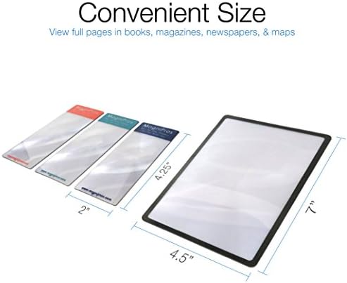 The magnifying sheet is right for studying small print on maps, directions or books and has the flexibility to enlarge full pages, Useful 4.5inch x 7inch dimension permits you to see full web page for books, magazines, newspapers and maps.