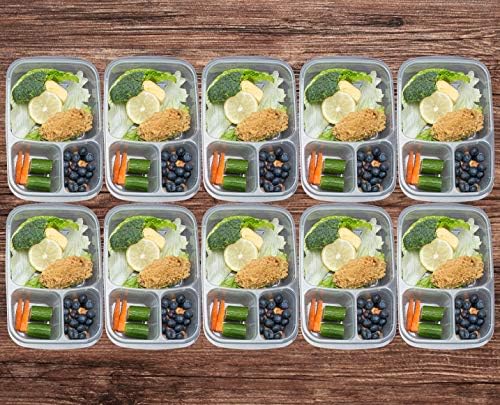 10 reviews for Meal Prep Containers 3 Compartment Meals Storage Containers Microwave Dishwasher Freezer Secure