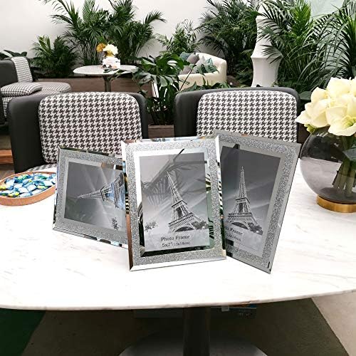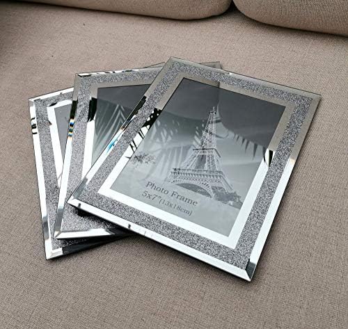 Meetart Sparkle Crystal Silver Glitter Mirror Glass Picture Body for Picture Dimension 5×7 Pack of three Piece