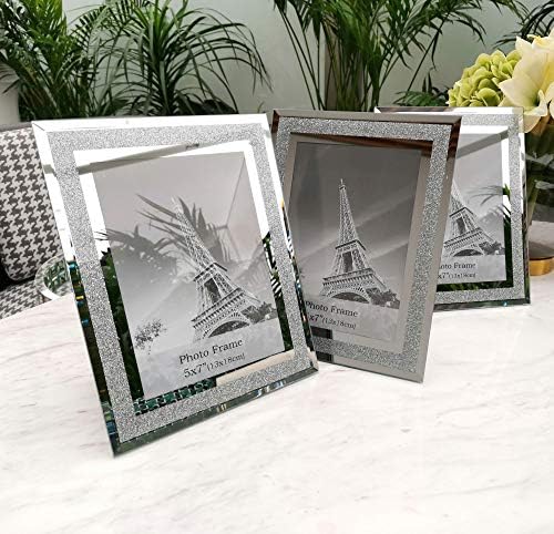 10 reviews for Meetart Sparkle Crystal Silver Glitter Mirror Glass Picture Body for Picture Dimension 5×7 Pack of three Piece