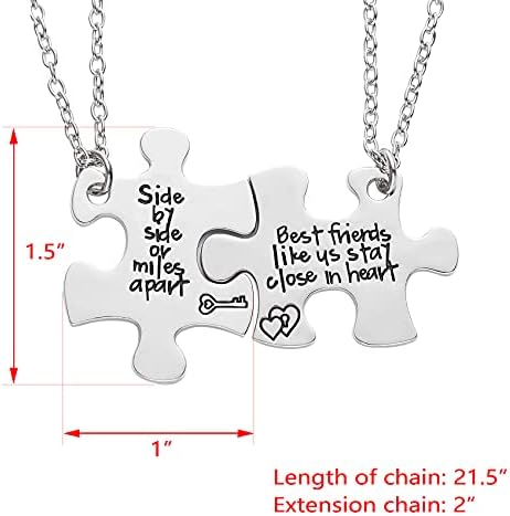 Side By Side Or Miles Apart Puzzle Piece Necklaces Set of 2 – Best Friends Necklace – Friends Puzzle Set, Make your best friend feel special with our cute and charming BFF necklace. Share your stories and the hearts of the necklace to remind each other of your special bond. The necklaces engraved with the words “ side by side or miles apart , best friends like us stay close at heart “ .it is best gift for friends .Perfect gift for your friends for an anniversary gift! These Puzzle piece couples necklaces . These puzzle pieces are made of alloy and are about 1 x 1.5 inches long and come with jump ring and key rings.All orders now come in a cute Melix Home Jewelry Gift Box ready to be gifted The cute best friend necklace set for girls is a true reminder of an eternal friendship. Surprise your best friend on her Birthday, Christmas or Thanksgiving! Melix Home: Your Reliable & Best Choice of Fashion Jewelry, Our products will stay with you for a long time because of the durable raw material. We make timeless accessories that can brighten up and compliment your look without much effort.