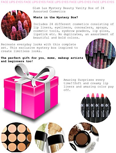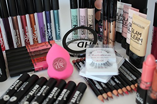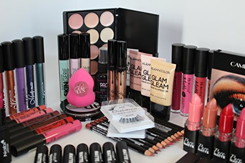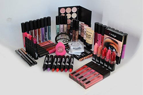 Consists of 24 totally different cosmetics together with eyeliners, lip liners, concealers, lip gloss, beauty applicators, and eyebrow powder.