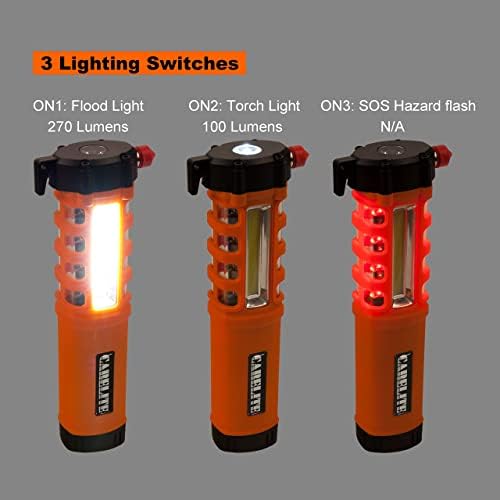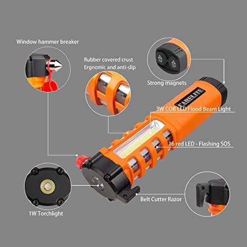 ➣5-in-1 Versatility: Flood beam work mild, flash torch mild, flash beacon, automobile window hammer breaker and belt razor cutter. For use for all types of actions you want mild on corresponding to tenting, fishing, family, mechanic, workshop, car and roadside emergency repairs