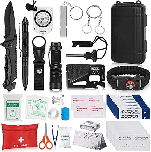 Prime High quality Survival Gears & First Assist Equipment – Contains the most well-liked survival requirements: army knife, saber card, tactical pen, 3-mode tactical flashlight, multi-function paracord bracelet and extra sensible survival gears. Complete first assist provides for emergency remedy, you possibly can cope with wounds quickly to forestall wound infections. Permitting to deal with a single household or a bunch of buddies underneath emergency case.