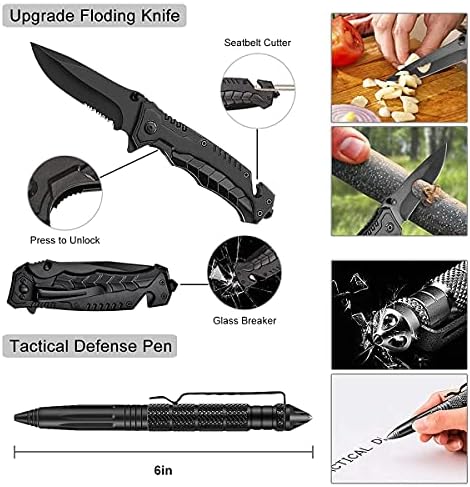 Should Have Outside Survival Gear: 12 in 1 Emergency Survival Equipment incorporates Improve folding knife, flashlight,tactical pen, emergency blanket, survival bracelet, compass, whistle, fireplace starter,and so on.