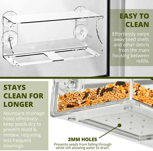 Simple to Clear – The seed tray has 60 drain holes, that are ventilated by two massive cutouts within the backside of the principle housing, to successfully maintain seeds dry and cut back the frequency wanted for cleansing; The principle housing might be faraway from the suction cups to be cleaned as wanted (no have to detach cups and reinstall every time); The slide-out tray makes it straightforward to wash the principle housing (no extra sticking your hand in to wash at troublesome angles); Detailed cleansing directions are included.