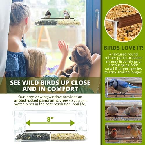 Fulfilling For All – Excellent year-round leisure for all ages, and even pets; Busy adults, youngsters, senior residents, and everybody in between can all have enjoyable watching birds up shut; Give your family members the present of nature with this window chicken feeder; Comes able to present with stunning packaging and makes a terrific housewarming, marriage ceremony, anniversary, Mom’s or Father’s Day, Christmas, or birthday current; Can even entertain canines and cats for hours daily!