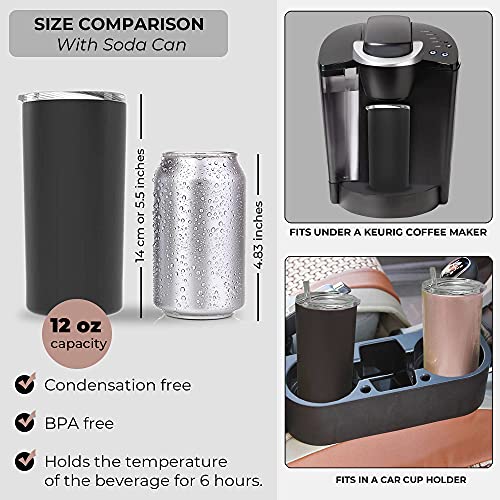 New Cup Design! Our new 12 ounce tumbler is designed for a greater grip and simply suits into automotive cup holders but nonetheless sufficiently small to suit below most k-cup machines. The double wall insulated design permits drinks to remain sizzling whereas the cup stays cool to the contact. Chilly drinks keep chilly with none condensation forming exterior of the cup. BPA FREE STRAW is included.