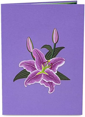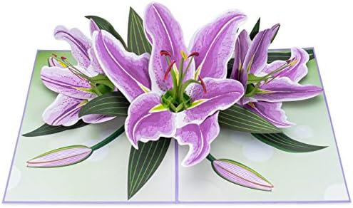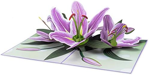 HANDMADE INTRICATE DESIGN – The Paper Love Lilies Pop-Up Card options an exquisite distinctive 3D design, Resembling three lovely purple Lily Flowers.