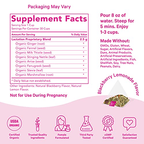 All of the necessities: 100% natural herbs, together with Nettle, Anise, Marshmallow Root, Fenugreek, and Milk Thistle, to help lactation for nursing moms. Caffeine-free.