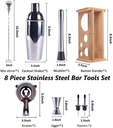 BARTENDER KIT FOR MAKE DELICIOUS COCKTAIL – Skilled chrome steel bar instruments for newbie, skilled bartender or individuals who need a residence bar. 8-Piece bar set contains 1pc 25oz cocktail shaker, 1pc jigger, 1pc combine stirrer, 1pc muddler, 1pc strainer, 2pcs pourers, 1pc bamboo stander. A whole sensible barware set comes with recipes for easy cocktails allow you to get began in your cocktail making expertise.