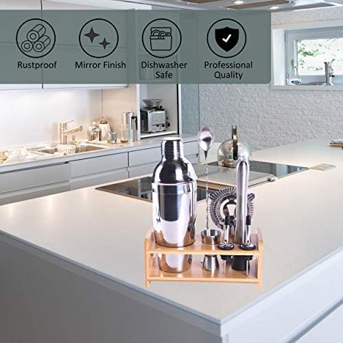 EVERYTHING YOU WANT TO KNOW – Our bar package use ultra-durable chrome steel, with a mirror end resist rust, anti-scratches, anti-dents, sturdy and may final a few years. You may wash bar instruments simply by hand or dishwasher. Distinctive bamboo stander for storage and show, your visitors will certainly be attracted by this distinctive residence decor. This stander is designed to maintain all of the cocktail equipment organized – You by no means have to fret about shedding them anymore!