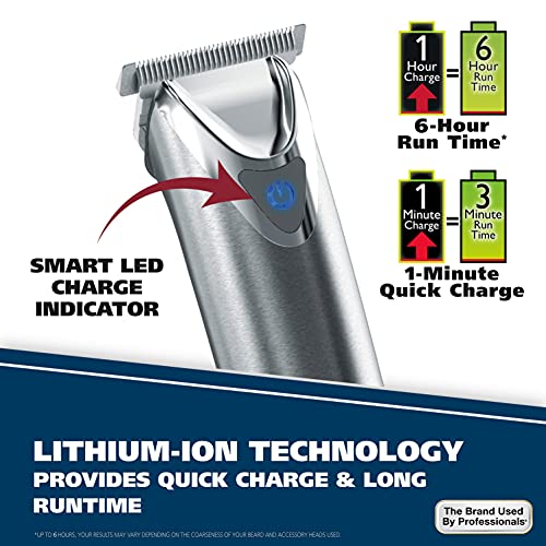 Lithium Ion + outlasts different rechargeable trimmers with as much as 6 hours of run time from a 1 hour cost.