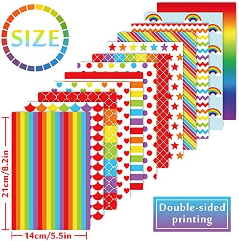 12 Designs – Our sample paper set is rainbow coloured, printed with colourful components, comparable to star, dots, coronary heart, stripes, waves, rainbow, and many others., shiny and vivid coloration with beautiful sample that make your crafts look beautiful.