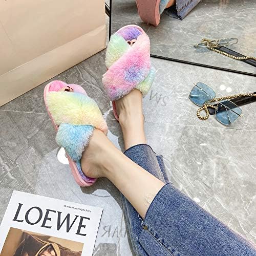 Ehoomely Womens Fuzzy Slippers Sandals Leopard Plush Open Toe Fake Fur Fluffy Home Flats Slippers Cross Band Delicate Heat Comfortable Cozy Bed room Slide Slippers—Excellent present for vogue & fashionable women